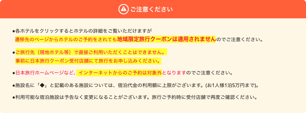 ※日本旅行ホームページなど、インターネットからのご予約は対象外となりますのでご注意ください。